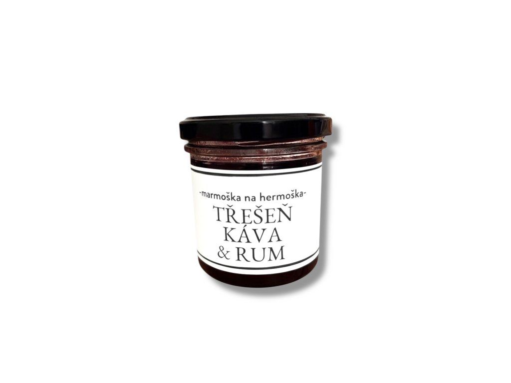 Marmeláda Třešeň, rum a káva představuje odvážnou a přitom dokonale vyváženou kombinaci chutí, která posouvá běžné ovocné delikatesy na zcela novou úroveň. Sladké, šťavnaté třešně tvoří plný ovocný základ, který je doplněn hřejivými tóny kvalitního rumu a jemnou, elegantní vůní kávy. Výsledkem je hluboká, smyslná a nezaměnitelná chuť, určená především pro dospělé milovníky netradičních kombinací.